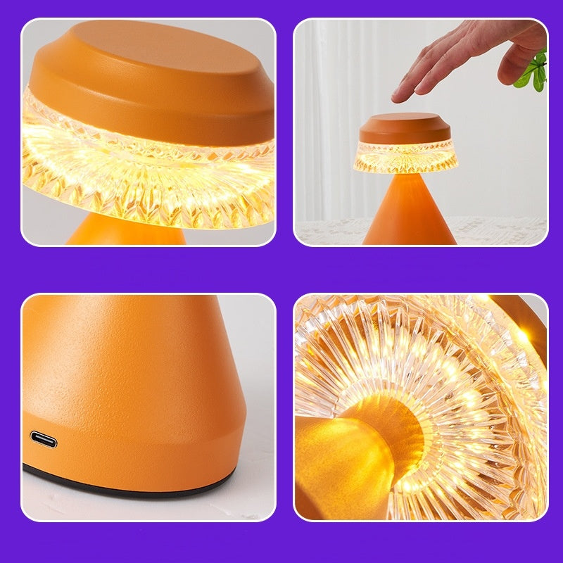 The Bird's Nest Table Lamp brings retro style to any space with its unique bird's-nest-inspired shade design. Available in black, coffee, and orange, it offers versatile style options. Crafted from durable iron and acrylic, the lamp features a touch switch and stepless dimming for customizable brightness. Its compact size and rechargeable battery make it a portable and stylish lighting solution for bedrooms, living rooms, or offices.