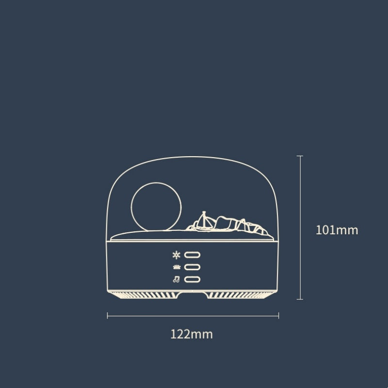 The "Moon Boat Bluetooth Speaker Night Lamp" is a multi-functional device that combines a soothing night lamp, a Bluetooth speaker, and a decorative piece, available in white and pink. The lamp features a transparent dome covering a charming scene of a moon and a boat, which illuminates with a soft, warm glow. Below the dome, the base houses intuitive control buttons for the light and speaker. With Bluetooth connectivity, you can easily stream music wirelessly. Its compact and attractive design makes it a perfect addition to any space.